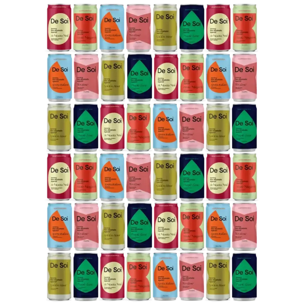 A complete Dry January bundle, made to carry you through the month. 8 cans of every De Soi flavor, 48 cans total, designed for daily sipping and easy sharing.