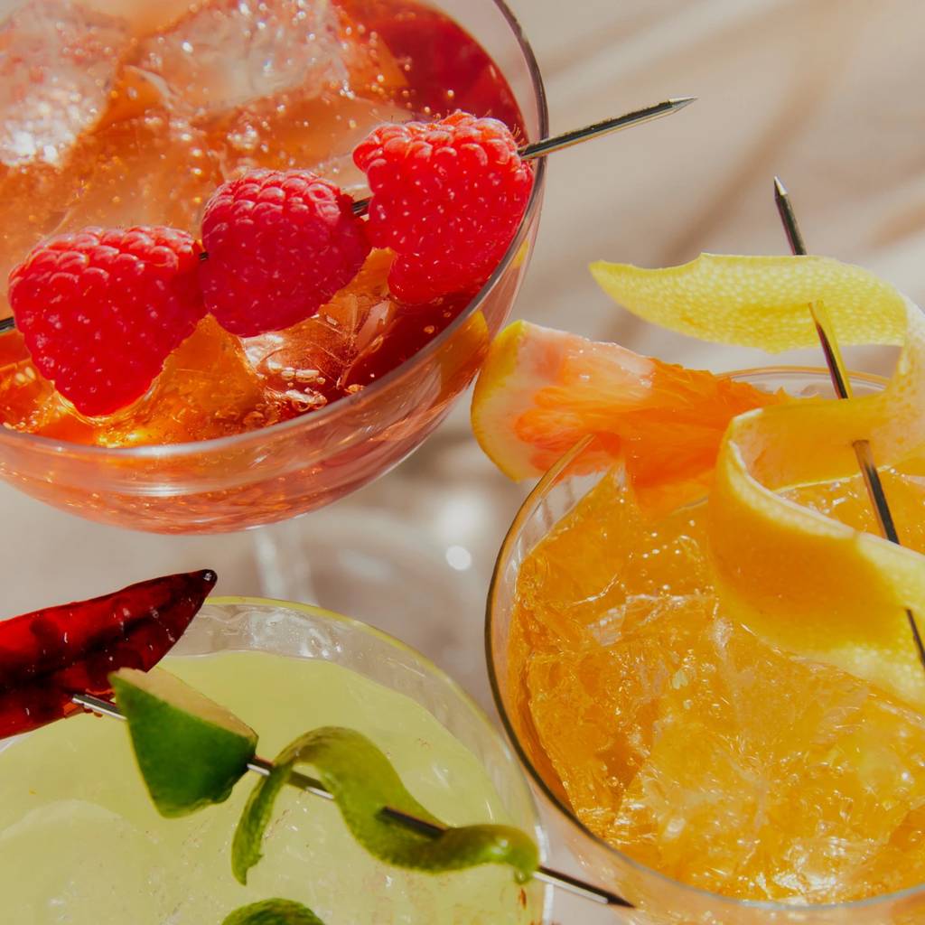 Each of our six apéritifs are crafted with natural botanicals, from pomegranate and ginger in St. Moritz Mule, to lime and jalapeño in Haute Margarita, to citrus and grape in Spritz Italiano, to raspberry and rooibos in Très Rosé, to yuzu and chamomile in Golden Hour, to blackberry and rose in Purple Lune.