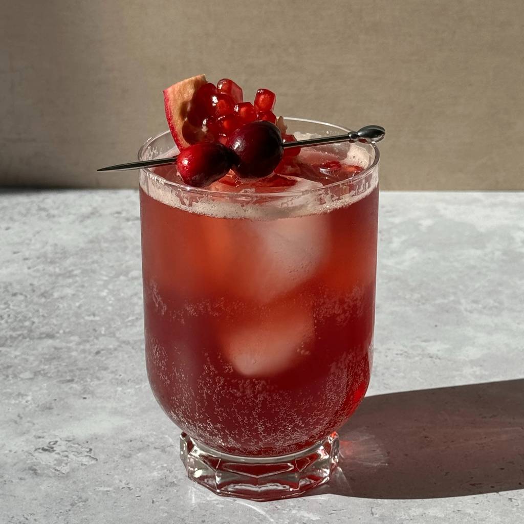 St. Moritz Mule is a juicy mix of pomegranate, tart cranberry, and spicy ginger with a hint of rosemary — a farmers market haul in a glass, finished with rich and relaxing adaptogens L-theanine, lion’s mane, and reishi mushroom.